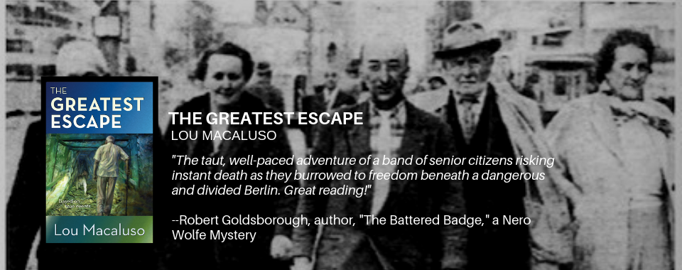 The Greatest Escape – Danger and adventure abound as a group of senior citizens escape through the Berlin Wall to freedom. Based on the inspiring true story of one of the most daring Cold War exoduses. A Berlin trip a few years ago rekindled the author’s twenty-year fascination with a daring, true, tunnel escape from East to West Berlin during the height of the Cold War. A wonderful group of feisty senior citizens led by an eighty-one-year-old man, pulled off one of the most daring escapes to freedom in recent history. The fictionalized account of these real events is the backbone of this wonderful novel by prodigious author Lou Macaluso. The Greatest Escape must rank as one of the best historical fictions of this period anyone has written to date. This terrifically drawn group of senior citizens was rejected because of their ages from a neighbor’s tunnel exodus made famous by books and international movies (Escape from East Berlin and Tunnel28). Their response was to build their own tunnel – bigger, better, and faster than their snubbing neighbor’s renowned underpass. In the wake of renewed public interest in Cold War stories (Bridge of Spies, Ken Follett’s Century Trilogy, and many more), the author has embraced, researched, and written this historical suspense novel which includes an Author’s Final Note section that features photos of the real people and places, both then and now. Coming soon as a 2019 Release from Righter’s Mill Press in eBook and trade paperback formats. Rights for The Greatest Escape are available for film and television worldwide.